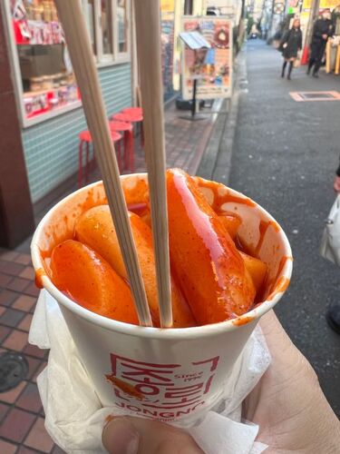 トッポギ⭐︎ねっとり甘辛く濃厚で食べ応えがある。 一人ならSサイズで十分満足だ♪ 韓国旅行に行ってからトッポギにハマり、トッポギを探して新大久保を食べ歩きます。 ここら辺のお店の中でも女性の長い行列があるのでけっこう目立ちます。スタッフの元気なお…