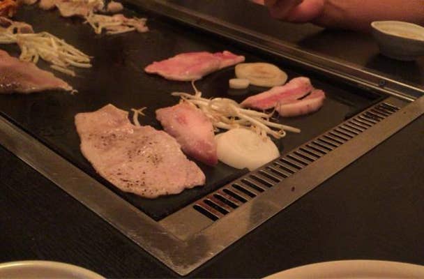 今回、私がオーダーしたのはランチメニューの「ホルモンのスタミナセット」。目の前の鉄板でジュージューと音を立てながら焼き上げられるホルモンは、見た目からして食欲をそそります。立ち上る香ばしい匂いがたまりません!