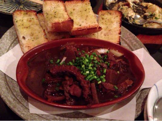 牛すじ煮込みがビーフシチューのよう?美味い〜左下 みんな元気な沖縄居酒屋。