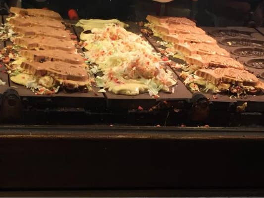 「お好み焼き」と「鯛焼き」という、意外な組み合わせに最初は「どんな味なんだろう…?」と少し不安もありましたが、食べてみるとこれが想像以上に美味しい!アツアツの鯛焼き生地と、お好み焼きの具材が絶妙にマッチしていて、一口食べるごとに笑顔がこぼれます。これは、完全に予想外の美味しさでした!