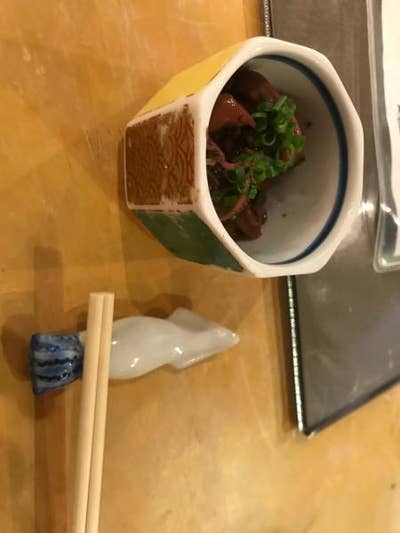 まず「ゲソの刺身の踊り食い」。透明感のあるゲソが新鮮そのもので、口に含むとぷりっとした食感が心地よい。ほんのり甘さがありながら、海の香りが鼻を抜けていきます。まだ動きを残したまま供される姿はインパクト抜群で、まさにこの店ならではの体験型の一品。口の中で“生きている”と感じられるほどの鮮度の高さに驚きました。