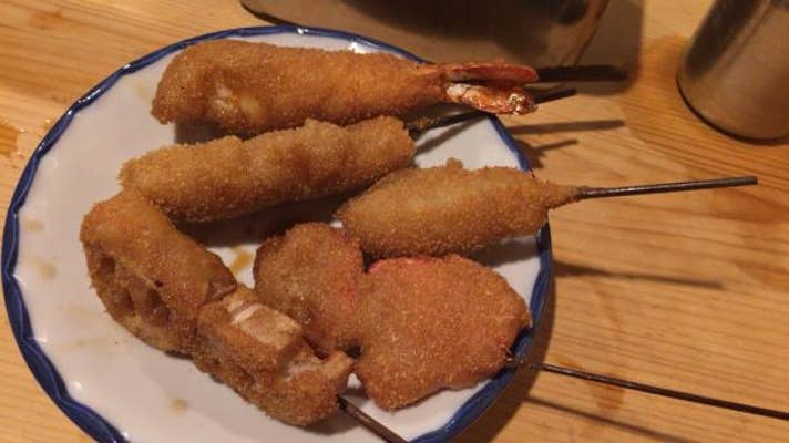 今回いただいたのは、定番の串カツに加え、唐揚げのような存在感の「とり」、ぷりぷりのえび、シャキッと感がたまらないれんこん、そして大阪名物・紅生姜。どれも一見シンプルながら、細部まで心を奪われる美味しさ。