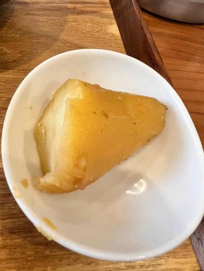 まずは主役のもつ煮込みを一口。……これは驚きました。とにかく“もつ”が柔らかい。そして臭みが一切ない!丁寧な下処理と時間をかけた煮込み具合が一発でわかるやさしい味わいで、味噌ベースの出汁にはほんのりとした甘みと、しっかりとした旨味の層が感じられます。にんにくや生姜でガツンとさせる方向ではなく、どちらかというと“深みと余韻”で攻めてくるタイプ。白ごはんが進む、進む。