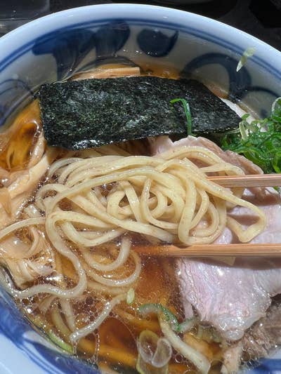 まずはスープを一口。あっさりしていながらも、奥深い醤油の旨味がじんわりと広がります。雑味がなく、何時間もかけて丁寧に作られたことが伝わってくる、そんな滋味深い味わいです。麺は、つるつるとした喉越しで、スープとの相性も抜群。小麦の香りが鼻を抜け、食欲をさらに掻き立てます。