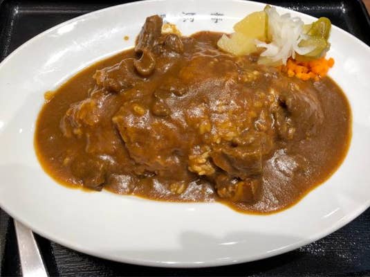 浪速の牛すじカレー☆美味い! やわらかとろける甘辛カレー♪ 普通でもごはん多めだが、大盛りも無料だった。