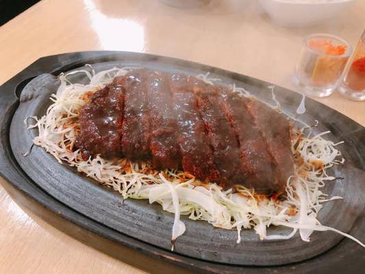 うまい!鉄板ひれかつ☆店員さんが目の前で味噌ソースをじゅわ〜っとかけてくれる♪こんな演出今まであったっけ?この店舗だけかな? 店員さんもみんな明るく、こどもと遊んでくれました。