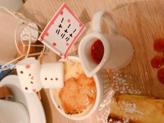 苺とブリュレのフレンチトースト☆ ねこ祭り期間限定、モチ入りミルフィーユフレンチトーストにカスタードブリュレ。