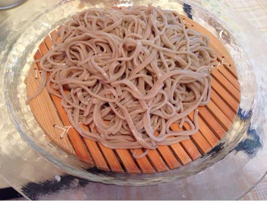 お♪蕎麦が美味い♪そしてガラスのお皿が綺麗です。
