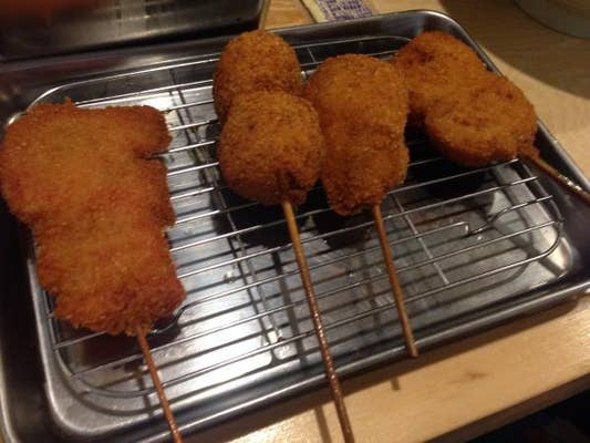 衣がしっとり美味しい♪ ジューシーな豚しそと、ほくほくやわらか長いアスパラがオススメ♪ 大阪の串カツ屋のイメージでいくと、メニュー数は半分くらい。