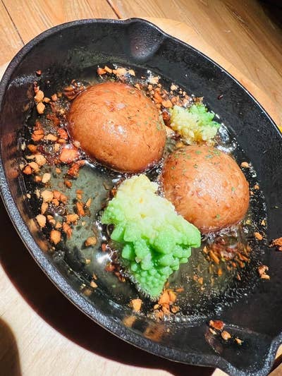 風味も格別。聞けば、厳選したジャンボマッシュルームを使っているそうで、そのこだわりが一口ごとに伝わってくる。オイルにはハーブもほんのり効いていて、重たくならず最後まで飽きずに食べられるのも魅力だった。